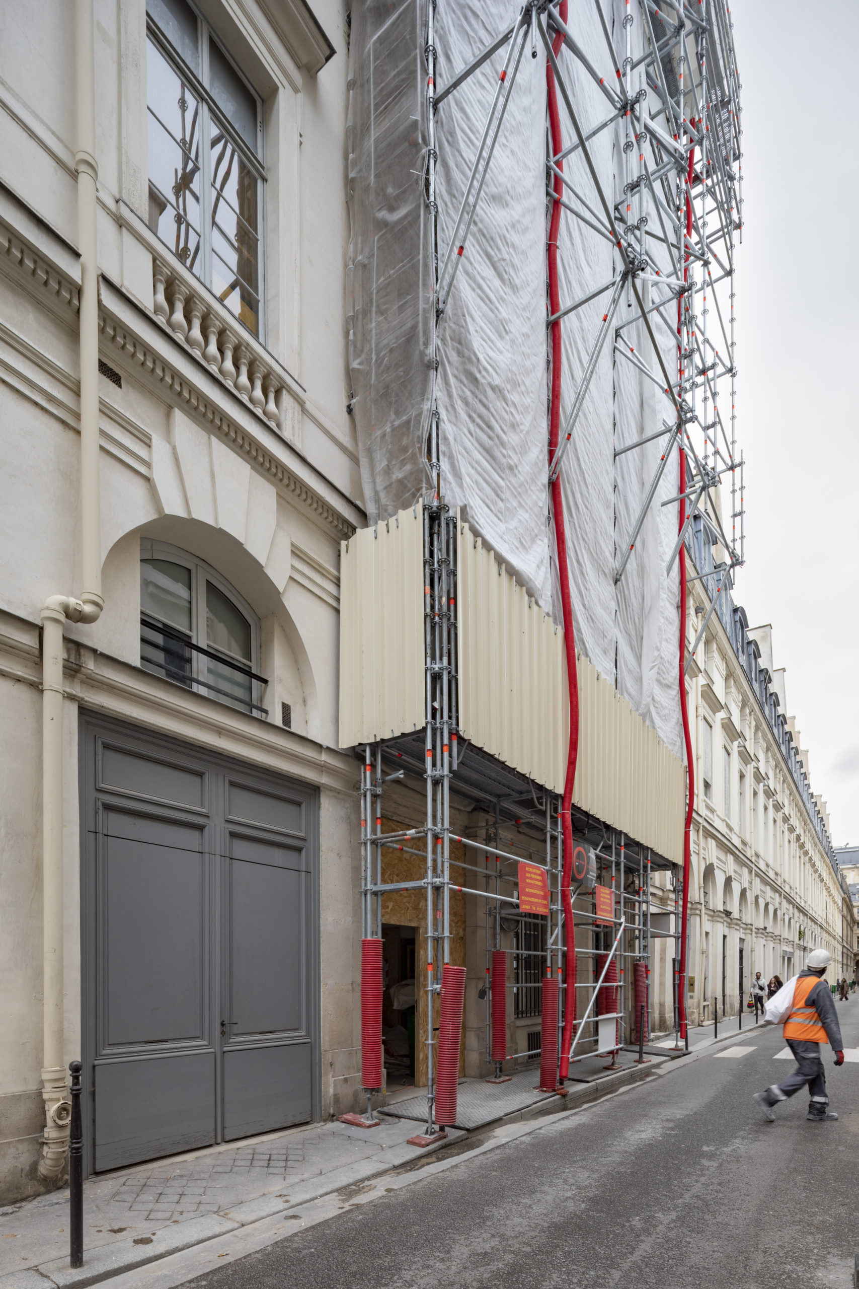 ESA Services est mandatée pour un important chantier de restauration de la façade en pierre, de la charpente et de la couverture classées Monument Historique, donnant sur le domaine du Palais-Royal et la rue Montpensier.