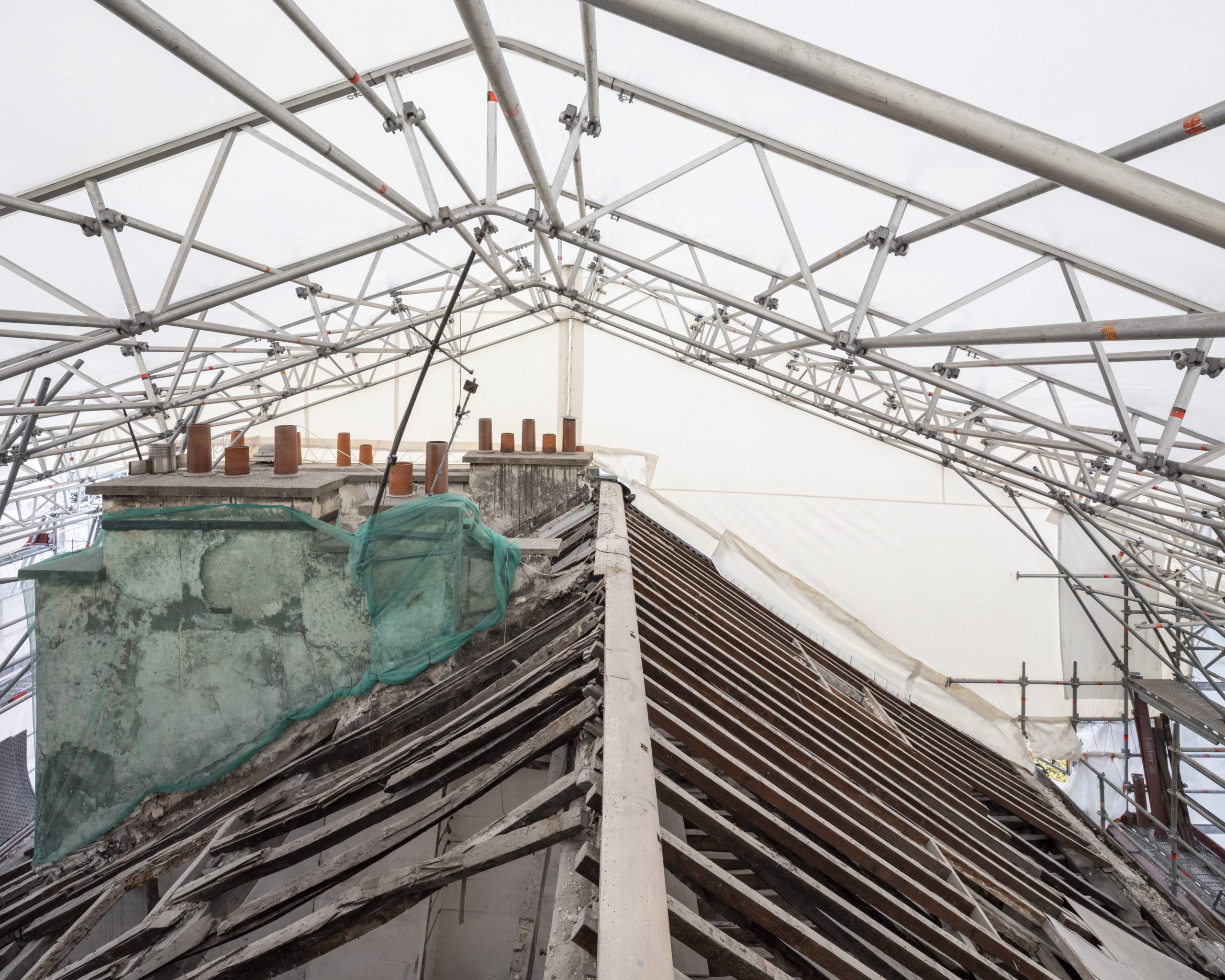 Dépose de la couverture pour la restauration de la charpente (Juillet – Septembre 2025).