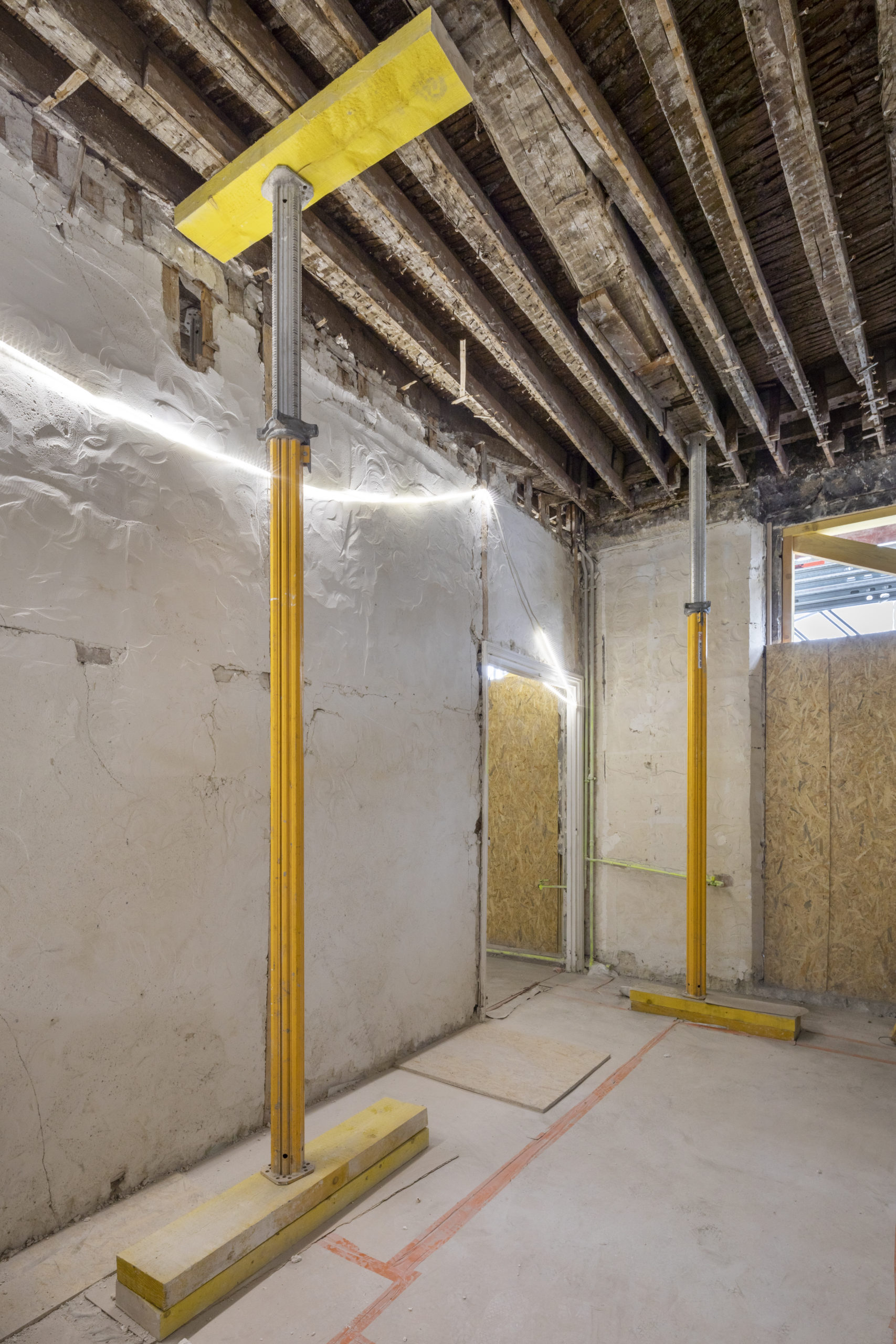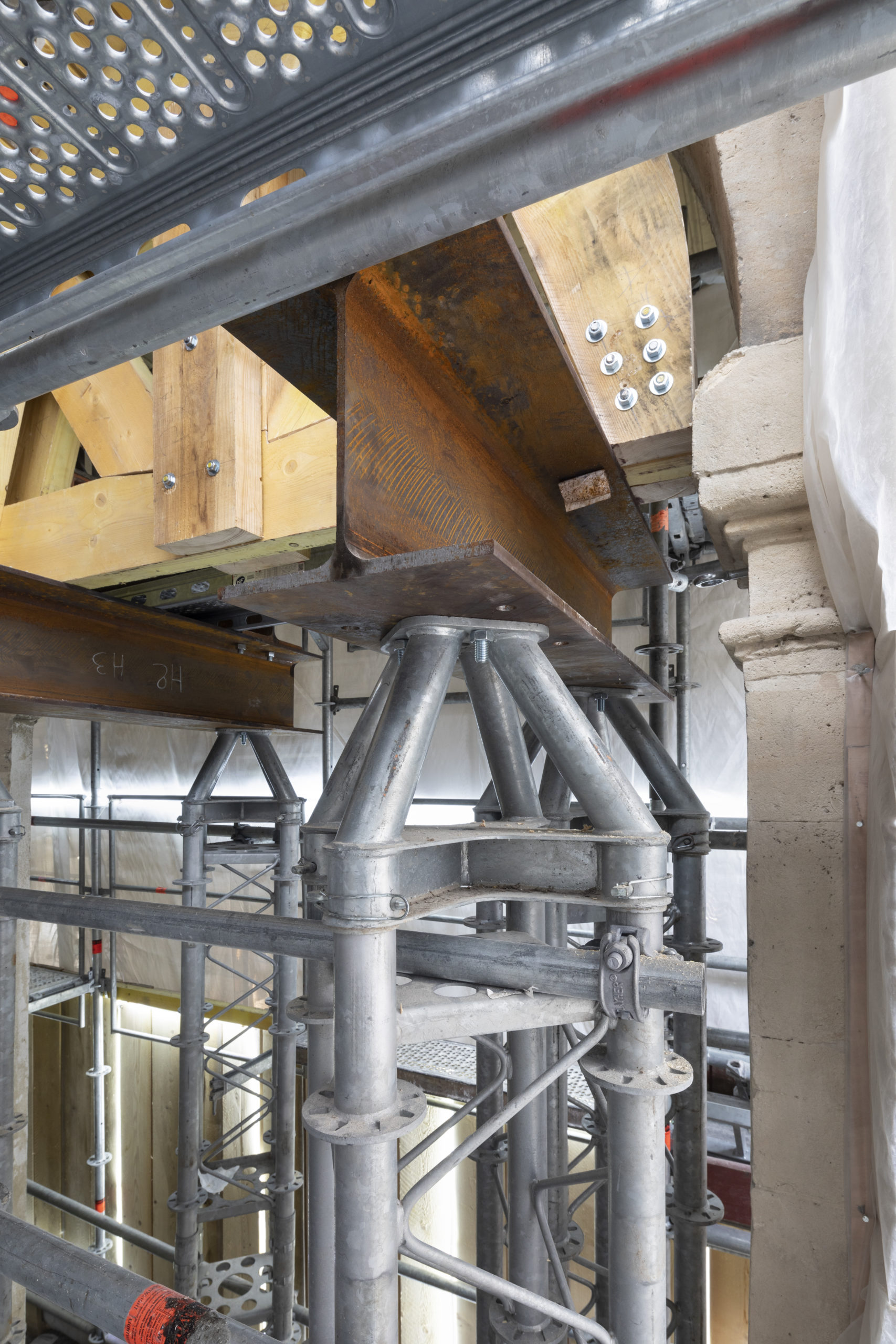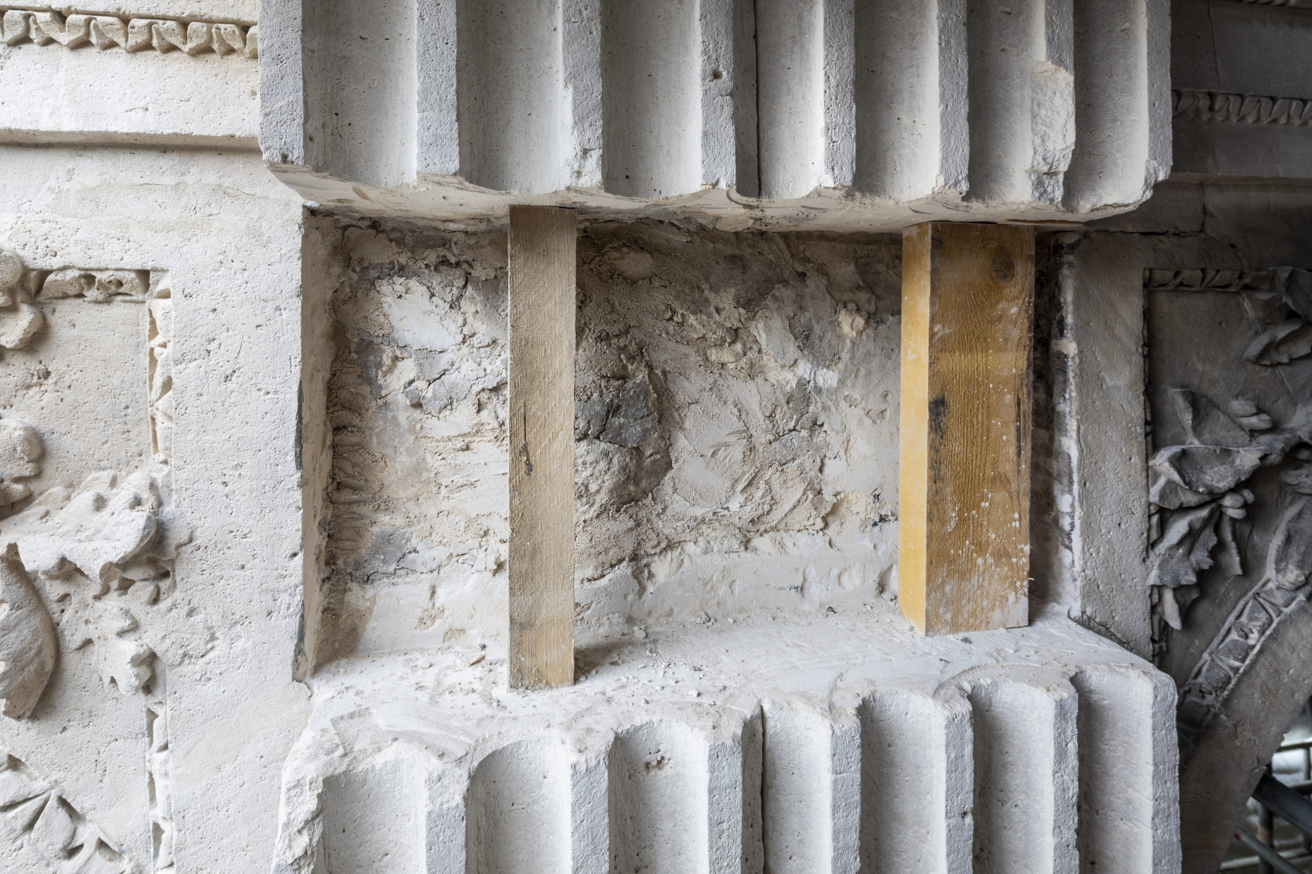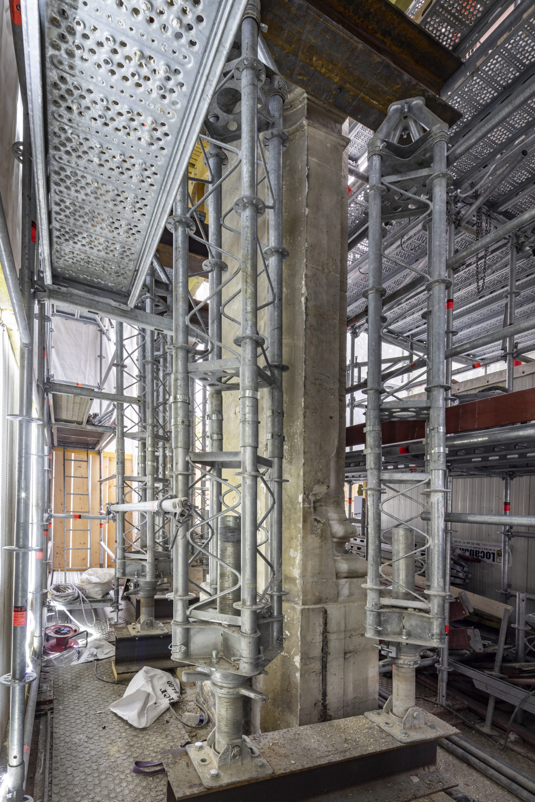 Mise en place des étaiements pour le remplacement de la pierre des pilastres (Septembre – Octobre 2025).