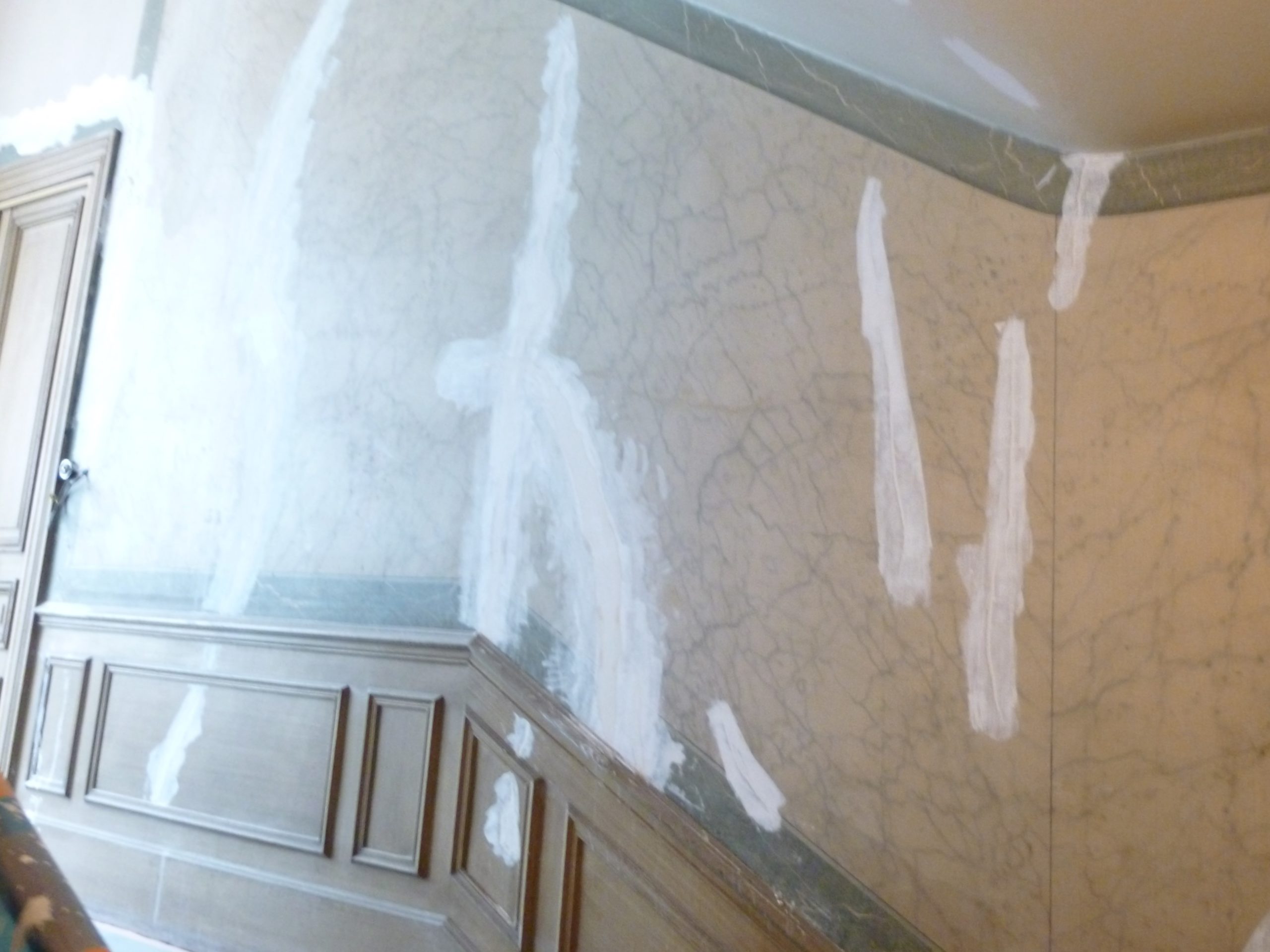 Restauration délicate et minutieuse des décors peints datant du XIXème siècle. Il s’agit de préserver l’intégrité architecturale de ce joyau historique.