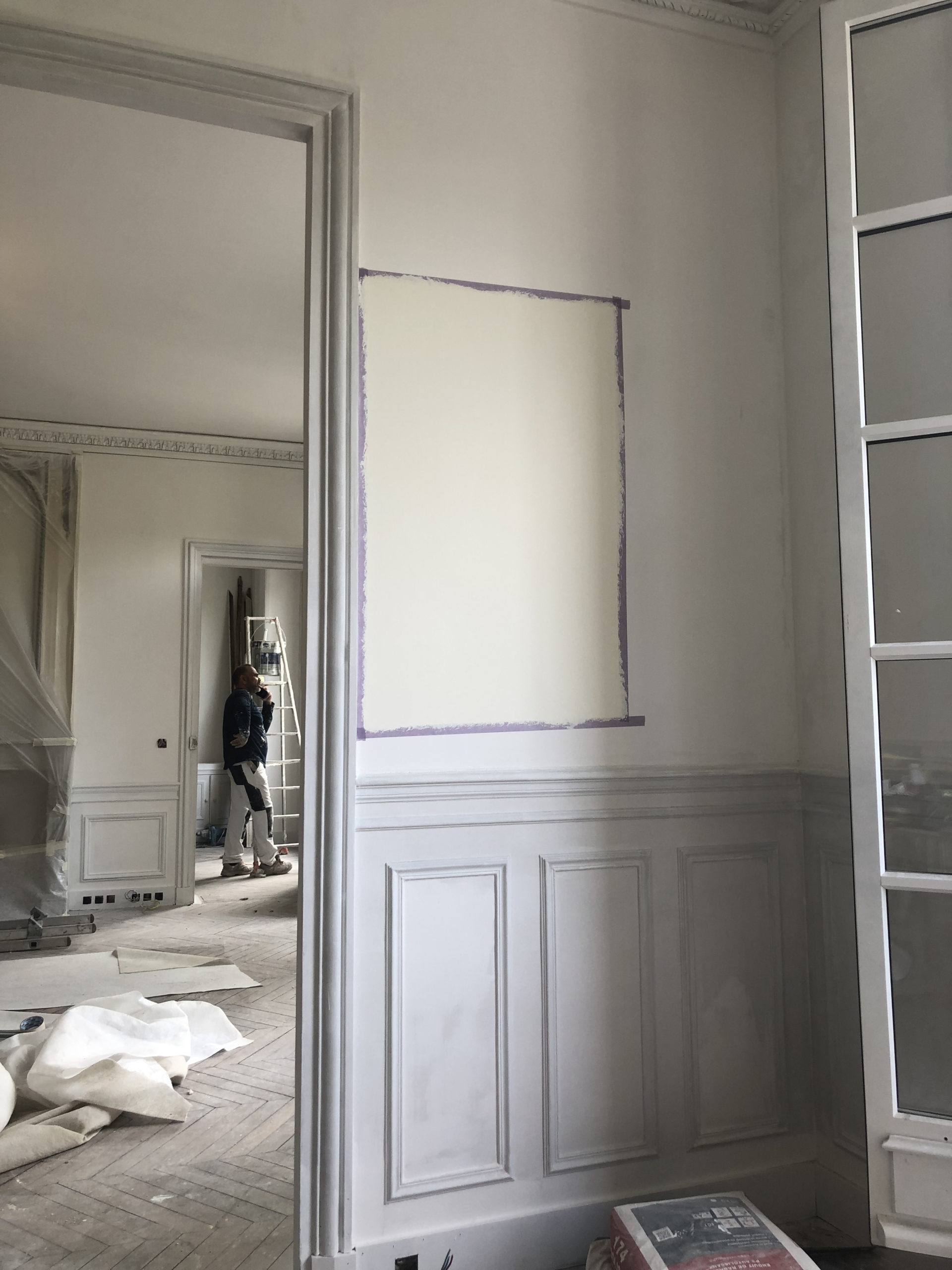 En parallèle, nous réalisons une rénovation complète de l’appartement, incluant la restauration des moulures d’origine, la pose d’un parquet élégant, la réfection des dorures, ainsi que la création d’agencements sur mesure. Chaque détail est soigneusement pris en charge pour allier modernité et respect de l’architecture historique de l’immeuble.